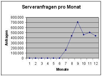 Die Serveranfragen pro Monat auf unseren drei Servern: |