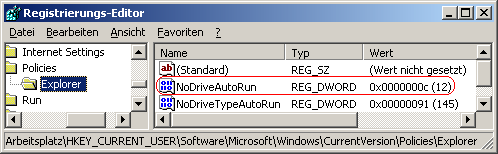 In bestimmten Fällen kann es manchmal notwendig sein, die Autostartfunktion nur für ein bestimmtes Laufwerk (Laufwerksbuchstabe) abzuschalten und nicht gleich für eine ganze Laufwerksgruppe. So kann z.B. die Autostartfunktion für den CD/DVD-Brenner deaktiviert werden, für das CD/DVD-Laufwerk bleibt die Funktion aber weiterhin aktiv. Mit dem folgenden Schlüssel in der Registrierungsdatei können Sie die Autostartfunktion für einzelne Laufwerksbuchstaben abschalten. So geht's: