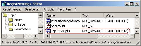 Die Fenstergröße einer typischen TCP-Verbindung wird beim Aufbau der Verbindung festgelegt und kann bis zu 64 KB (je nach Einstellung) betragen. Der Wert legt die maximale Datenmenge fest, die ein Computer empfangen kann, ohne Daten bestätigen zu müssen. Bei größeren Datenmengen muss der Sender also abwarten, bis der Empfänger den Empfangsspeicher geleert und dies bestätigt hat, bevor die nächsten Daten gesendet werden können. Damit größere Datenmengen effektiver übertragen werden können, wurden nach "RFC 1323" erweiterte TCP/IP-Funktionen eingeführt. Damit ist jetzt eine Fenstergröße bis zu 1 GB möglich. Allerdings müssen sowohl Empfänger als auch Sender große TCP-Fenster unterstützen. Bei der TCP-Zeitstempeloption wird jedem Paket ein Zeitstempel für zur Berechnung der Umlaufzeit hinzugefügt. Der folgende Schlüssel in der Registrierung legt nun fest, ob große TCP-Fenster sowie Zeitstempel aktiviert oder deaktiviert werden. So geht's: