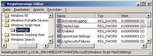 Sobald ein Skript mit "cscript.exe" (Konsolenmodus) ausgeführt wird, so wird beim Start immer ein Schriftband u.a. mit der Version von Windows Script Host (WSH) angezeigt. Mit dem folgenden Schlüssel in der Registrierungsdatei wird die Anzeige des Schriftbandes abgeschalten und kann auch nicht über den Schalter "/Logo" angezeigt werden. So geht's:
