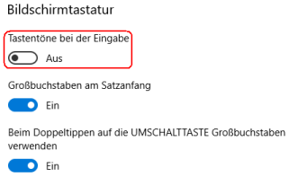 Beim Drücken jeder Taste auf der Bildschirmtastatur (nicht Desktop-App) wird standardmäßig ein Signalton bzw. Tastenton wiedergegeben / ausgegeben. Die akustische Rückmeldung der Bildschirmtastatur kann über die Benutzeroberfläche oder direkt über die Registrierung ein- oder ausschaltet werden.